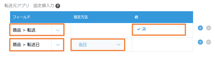 - 続いて、転送元アプリ固定値入力の設定を行います。