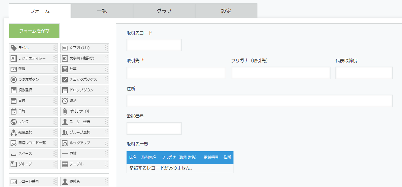 それぞれのアプリのフォーム設定で、任意のフィールドを設定します。