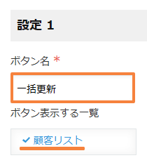 まずは、更新を行うボタン名とボタンを表示する一覧の設定を行いましょう。