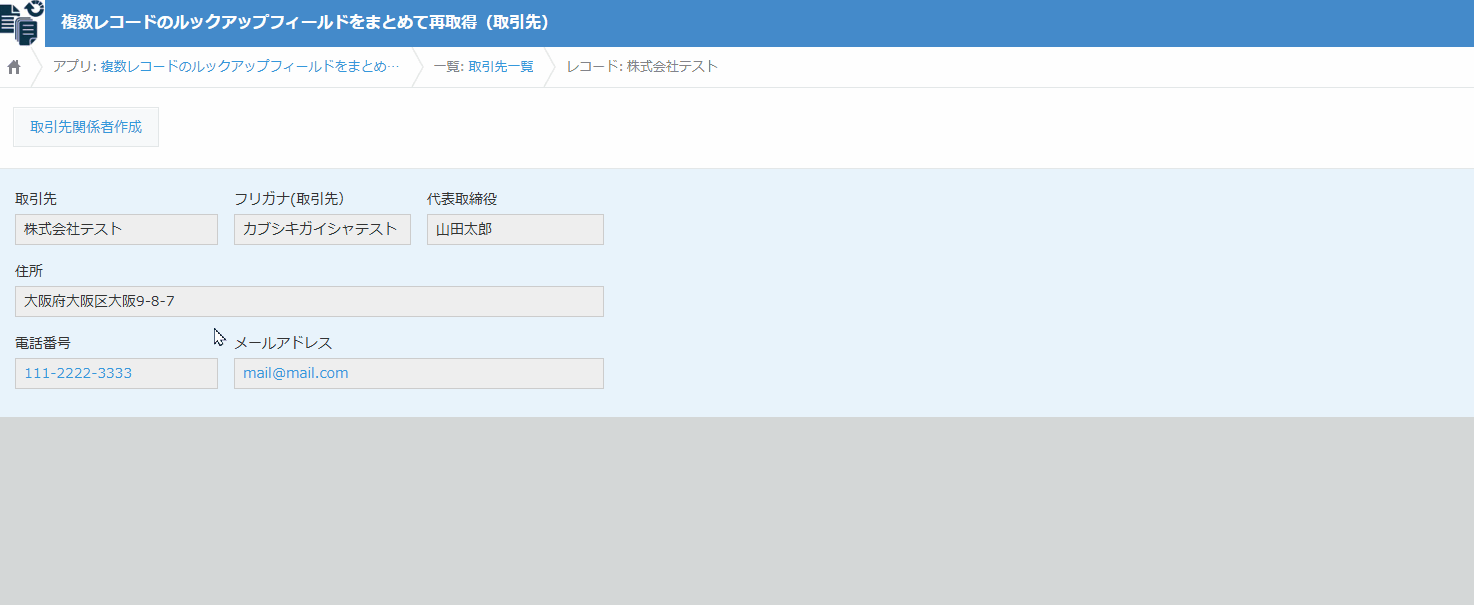- 取引先関係者アプリで、取引先のルックアップ情報をまとめて再取得する