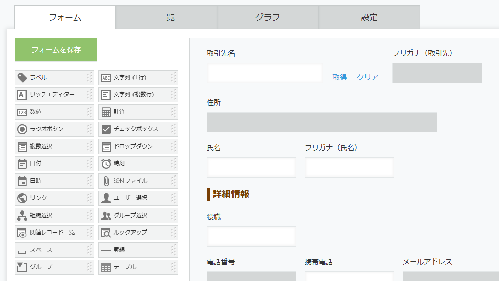 を設定します。ルックアップ先アプリ(取引先関係者アプリ)
