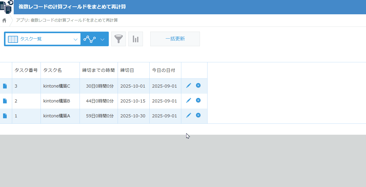一括更新機能と固定値入力機能を応用することで、複数のレコードにおける計算値を一括更新することが可能です。