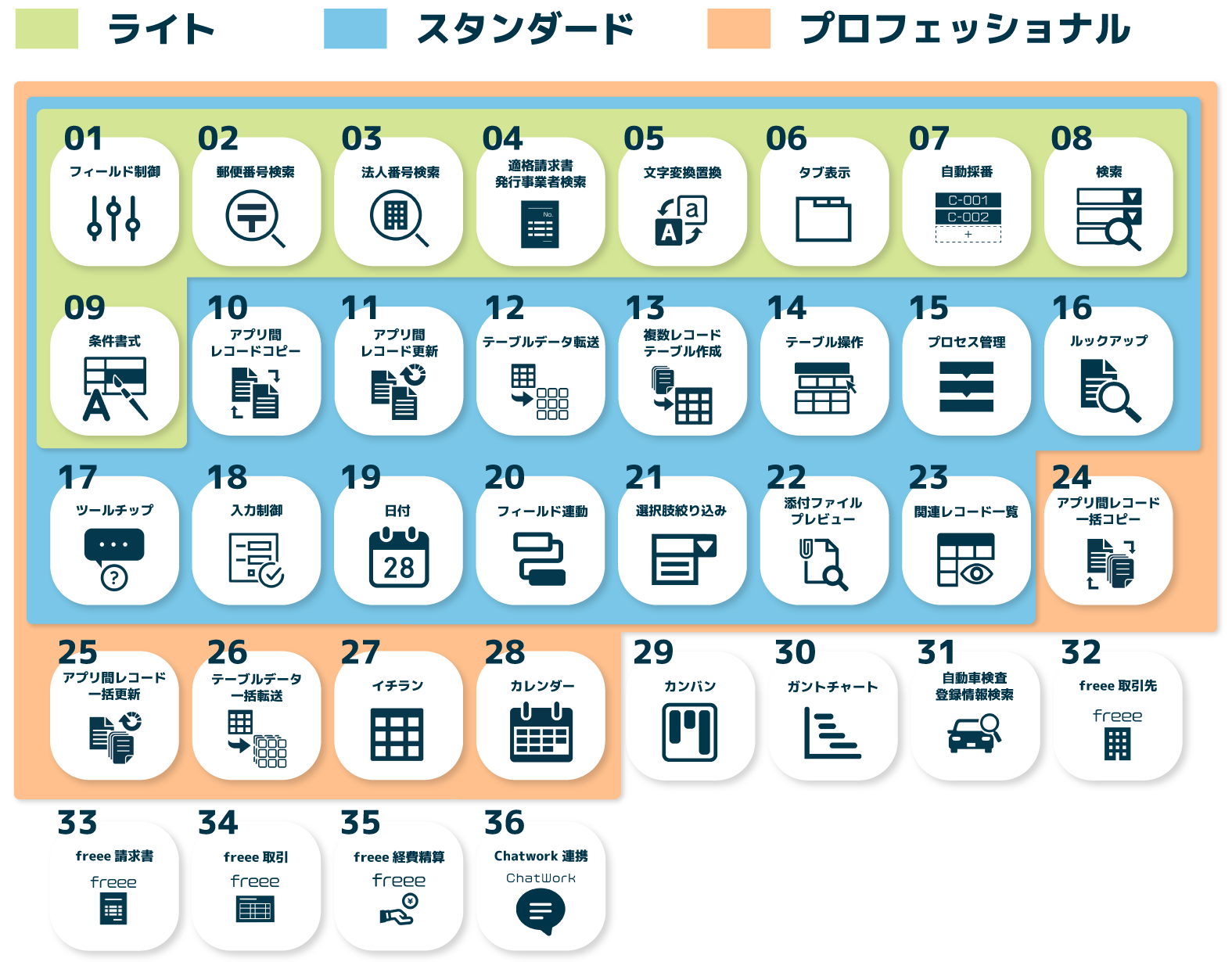 | 自動採番プラグイン ⇨ プラグインで設定した条件に基づいて、レコードを作成時に自動的に通し番号を付与することができるプラグインです。 |