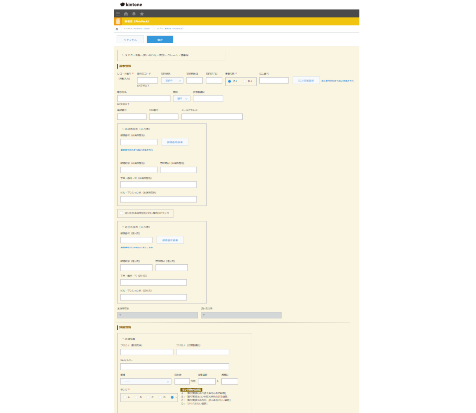 相談業務では、相談者個人の一般的な個人情報から、家庭環境、介護の状態など、多岐にわたる情報を1つのレコードに入力する必要があります。