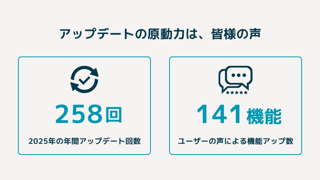 2025年は、機能追加だけでなく、安定性や操作性の改善にも継続して取り組みました。