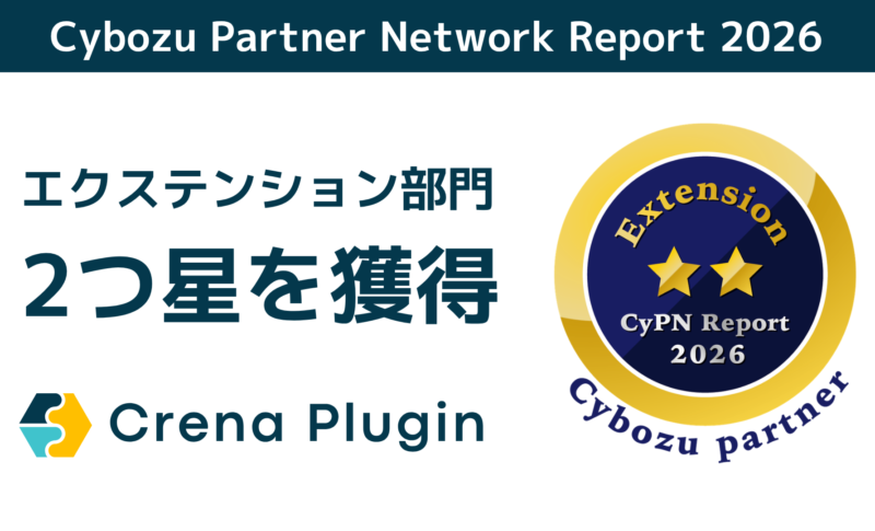 このたび、CrenaPluginがサイボウズ社のオフィシャルパートナー評価制度「Cybozu Partner Network Report 2026(CyPN Report)」において、エクステンション部門で「二つ星」を獲得しました。