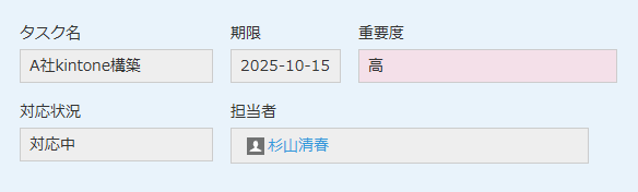 レコード詳細・追加・編集画面で、条件に合わせて特定のフィールドだけに色を付けることができます。