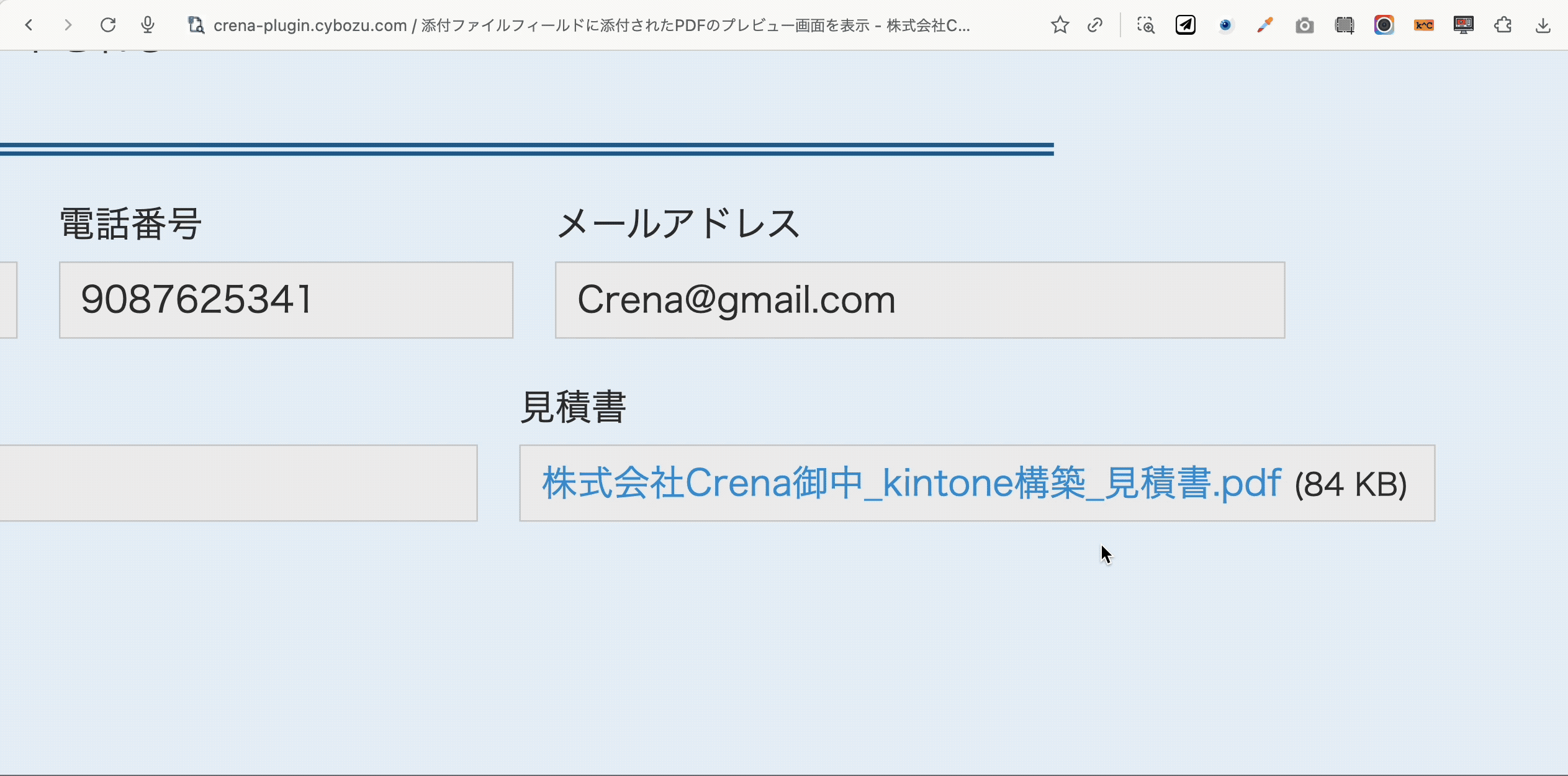 添付ファイルプレビュープラグインを使えば、添付ファイルフィールドに保存されたPDFをダウンロードせずに、そのままプレビュー表示できます。