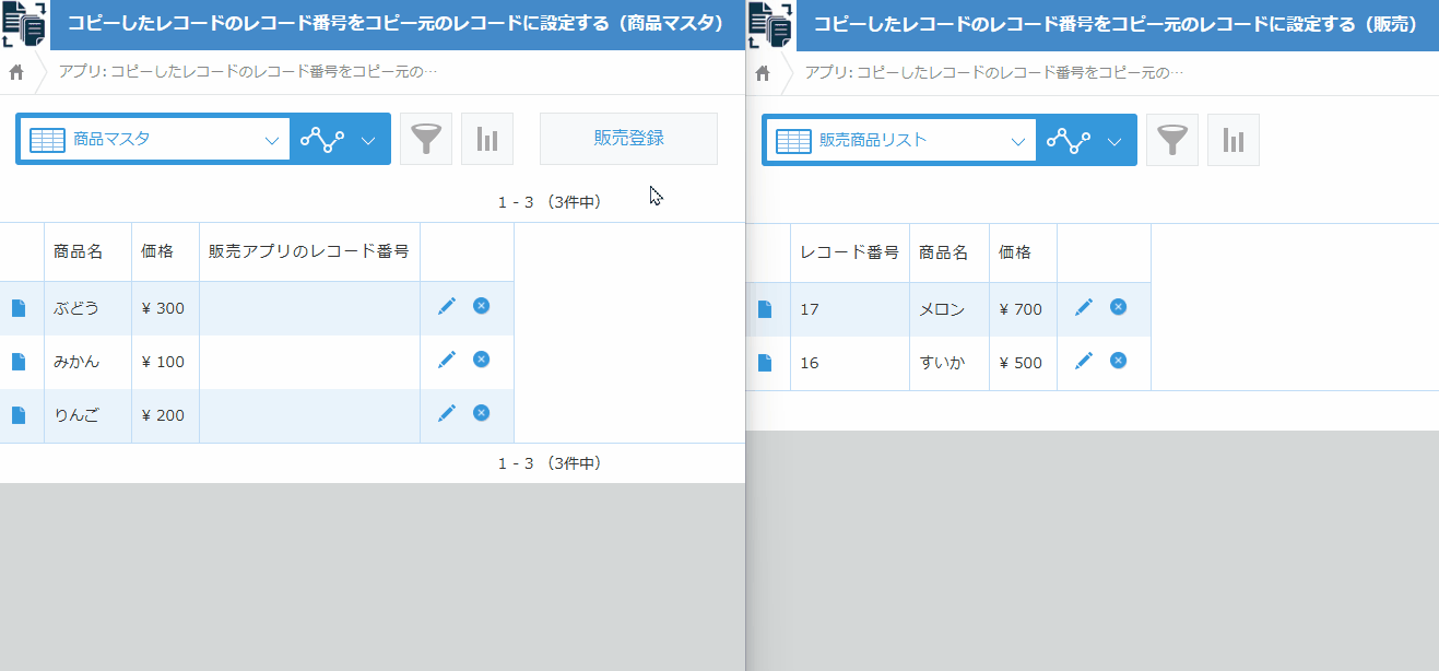 作成したコピー先レコードのレコード番号をコピー元に自動保存できます。