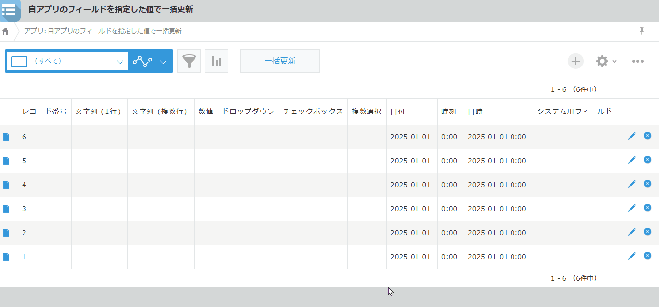 一覧画面で変更したいフィールドを選び、変更したい値を入力すると、特定のフィールドに同じ値を一括設定できます。